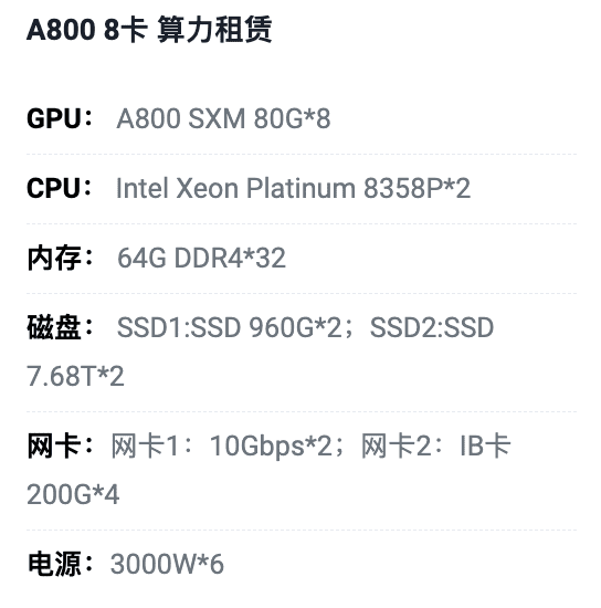 三亚A800八卡算力租用价格